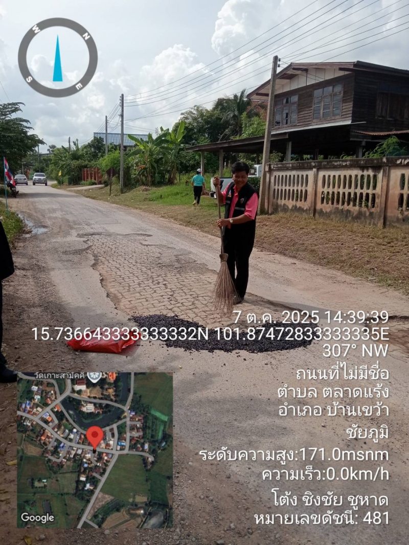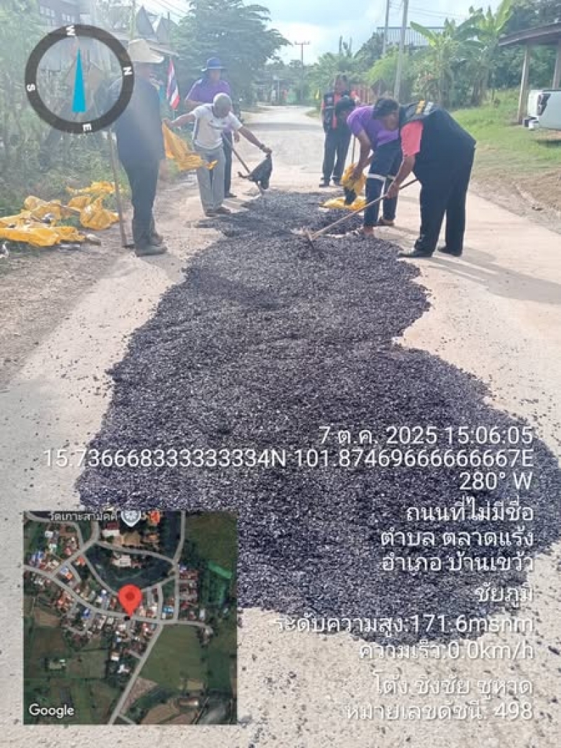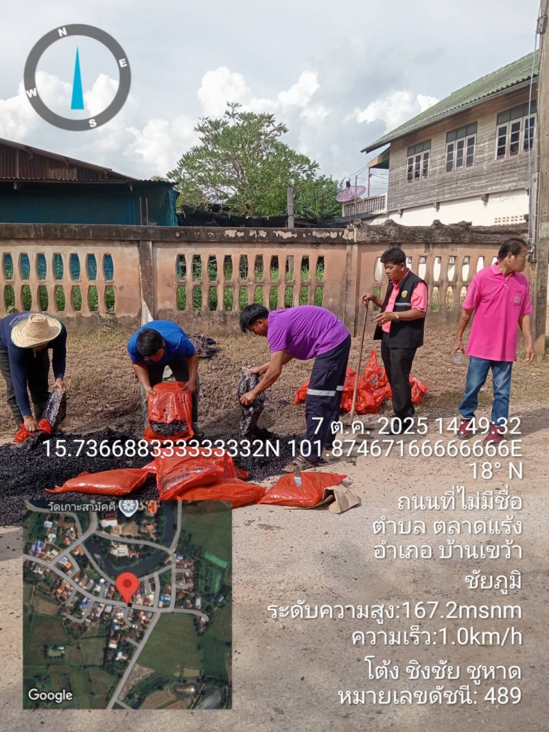 นายชิงชัย ชูหาด ที่ปรึกษานายกเทศมนตรีตำบลทุ่งทองและสมาชิกสภาเทศบาลตำบลทุ่งทอง ร่วมดำเนินการซ่อมแซมถนนโดยการนำยางมะตอยสำเร็จรูปของเทศบาลตำบลทุ่งทอง จำนวน 20 ถุง (น้ำหนัก20กิโลงกรัม/ถุง) สมทบกับองค์การบริหารส่วนจังหวัดชัยภูมิจำนวน 50 ถุงเพื่อทำการซ่อมแซมถนนลาดยางบริเวณสายกลางบ้าน บ้านหนองสโมง หมู่ 8 อำเภอบ้านเขว้า จังหวัดชัยภูมิ