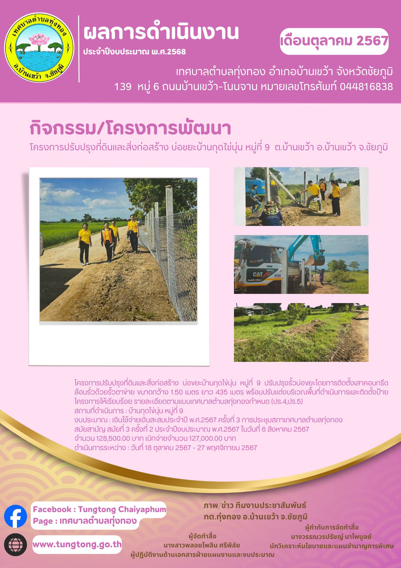โครงการปรับปรุงที่ดินและสิ่งก่อสร้าง บ่อขยะบ้านกุดไข่นุ่น หมู่ที่ 9 ต.บ้านเขว้า อ.บ้านเขว้า จ.ชัยภูมิ