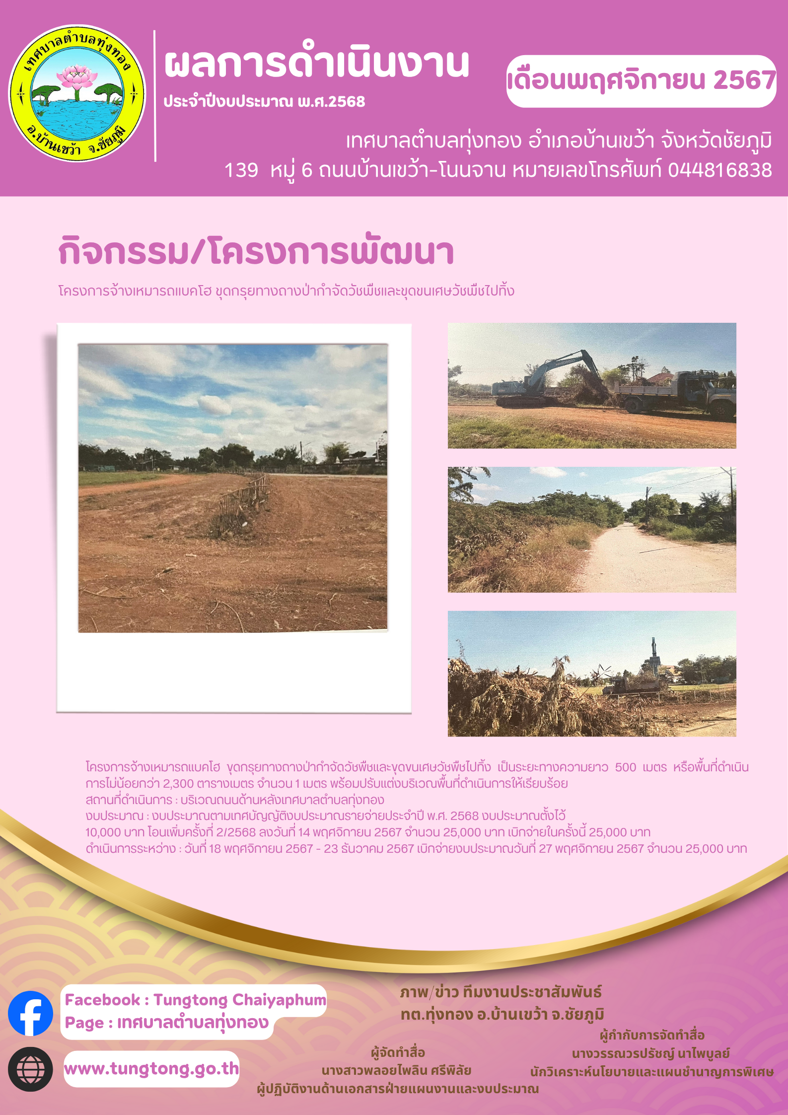 โครงการจ้างเหมารถแบคโฮ ขุดกรุยทางถางป่ากำจัดวัชพืชและขุดขนเศษวัชพืชไปทิ้ง