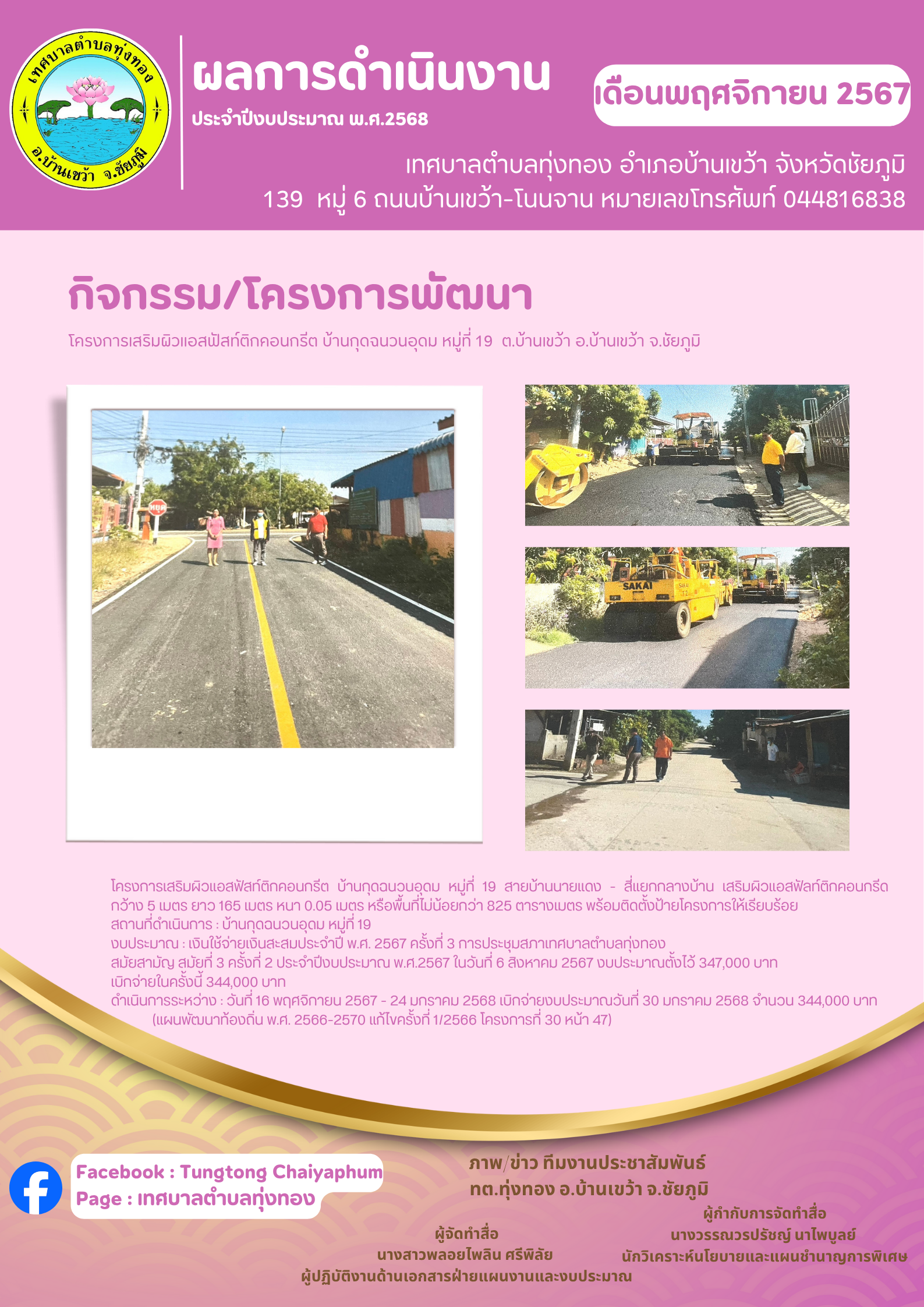 โครงการเสริมผิวแอสฟัสท์ติกคอนกรีต บ้านกุดฉนวนอุดม หมู่ที่ 19 ต.บ้านเขว้า อ.บ้านเขว้า จ.ชัยภูมิ