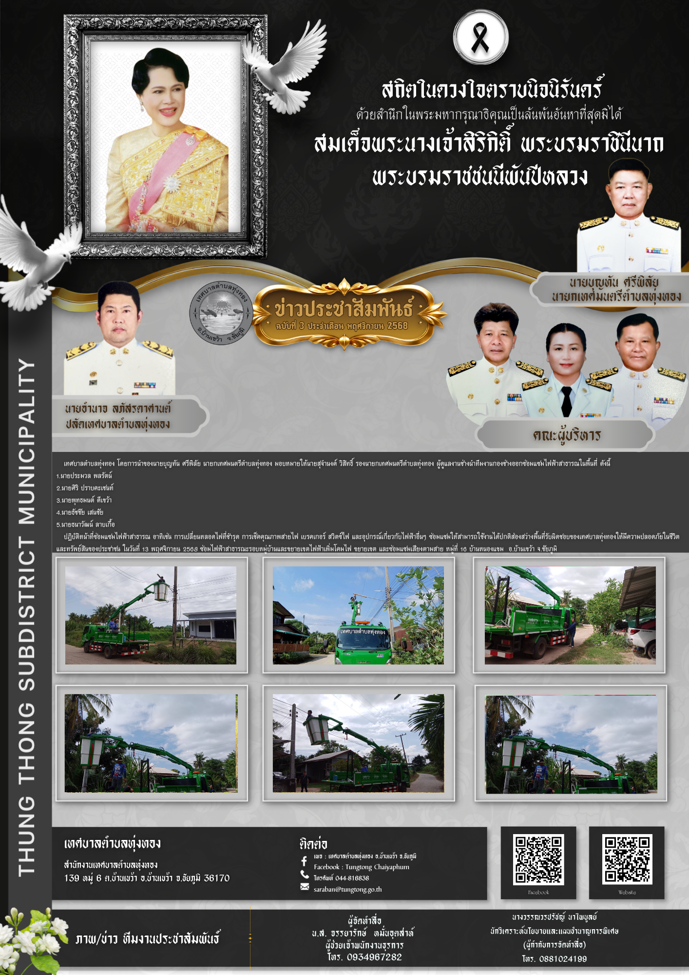 ปฏิบัติหน้าที่ซ่อมแซมไฟฟ้าสาธารณ อาทิเช่น การเปลี่ยนหลอดไฟที่ชำรุด การเช็คคุณภาพสายไฟ เบรคเกอร์ สวิตซ์ไฟ และอุปกรณ์เกี่ยวกับไฟฟ้าอื่นๆ ซ่อมแซมให้สามารถใช้งานได้ปกติส่องสว่างพื้นที่รับผิดชอบของเทศบาลทุ่งทองให้มีความปลอดภัยในชีวิตและทรัพย์สินของประชาชน ในวันที่ 13 พฤศจิกายน 2568 ซ่อมไฟฟ้าสาธารณะรอบหมู่บ้านและขยายเขตไฟฟ้าเพิ่มโคมไฟ ขยายเขต และซ่อมแซมเสียงตามสาย หมู่ที่ 16 บ้านหนองแขม อ.บ้านเขว้า จ.ชัยภูมิ