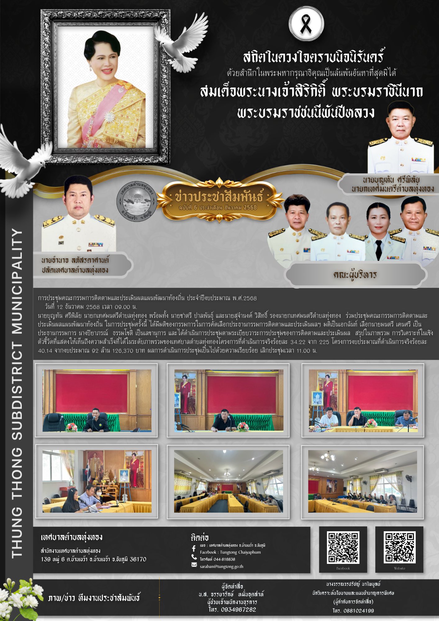 นายบุญทัน ศรีพิลัย นายกเทศมนตรีตำบลทุ่งทอง พร้อมทั้ง นายชาตรี ปาลพันธุ์ และนายสุจำนงค์ วิสิทธิ์ รองนายกเทศมนตรีตำบลทุ่งทอง ร่วมประชุมคณะกรรมการติดตามและประเมินผลแผนพัฒนาท้องถิ่น ประจำปีงบประมาณ พ.ศ.2568