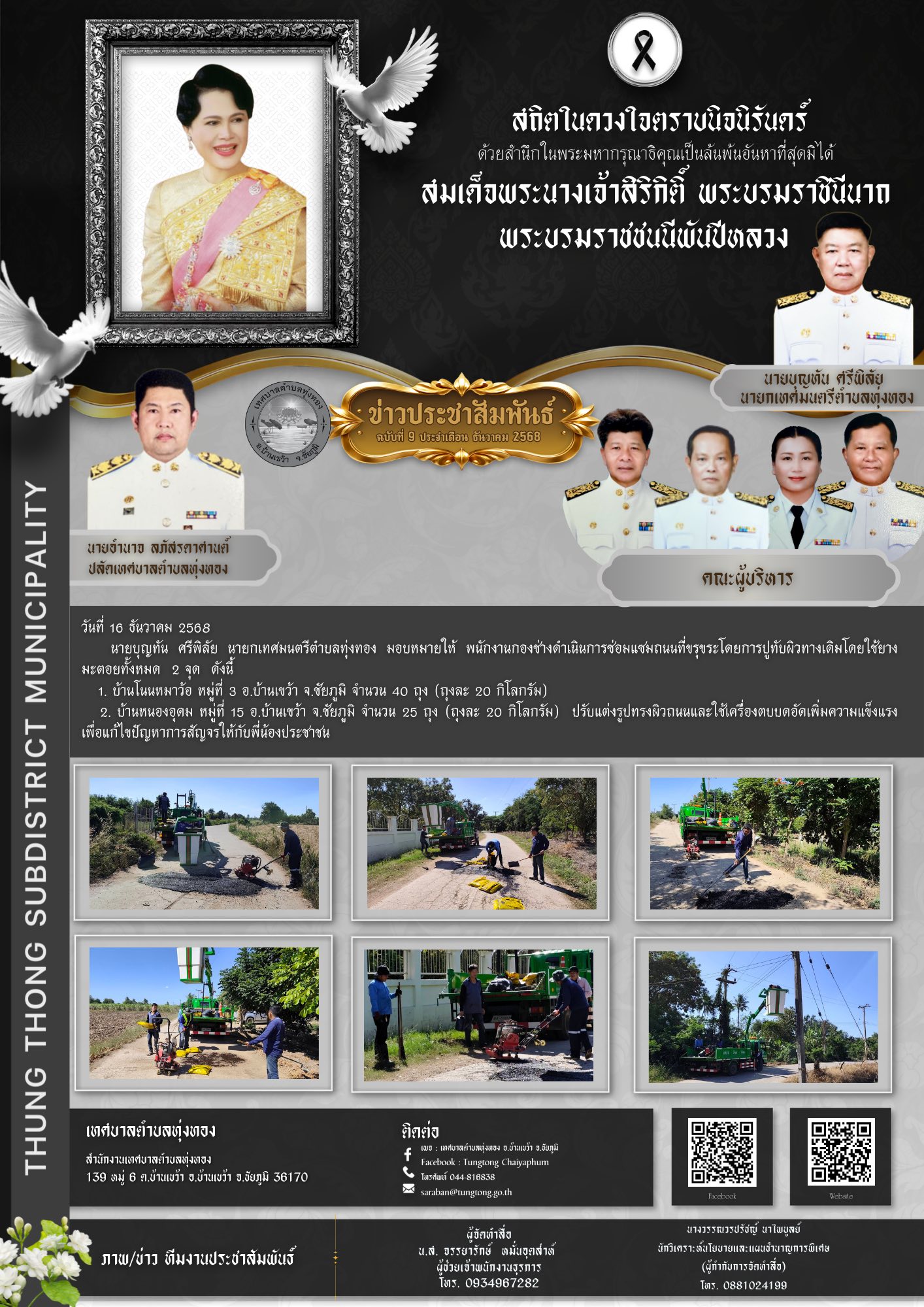 การดำเนินการซ่อมแซมถนนที่ขรุขระโดยการปูทับผิวทางเดิมโดยใช้ยางมะตอย ภายในเขตเทศบาลตำบลทุ่งทอง