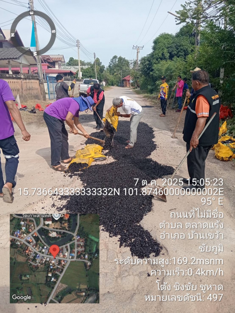 นายชิงชัย ชูหาด ที่ปรึกษานายกเทศมนตรีตำบลทุ่งทองและสมาชิกสภาเทศบาลตำบลทุ่งทอง ร่วมดำเนินการซ่อมแซมถนนโดยการนำยางมะตอยสำเร็จรูปของเทศบาลตำบลทุ่งทอง จำนวน 20 ถุง (น้ำหนัก20กิโลงกรัม/ถุง) สมทบกับองค์การบริหารส่วนจังหวัดชัยภูมิจำนวน 50 ถุงเพื่อทำการซ่อมแซมถนนลาดยางบริเวณสายกลางบ้าน บ้านหนองสโมง หมู่ 8 อำเภอบ้านเขว้า จังหวัดชัยภูมิ
